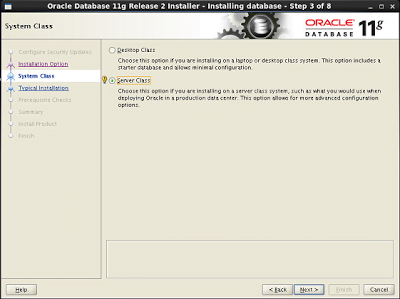 Select the database class you want to install. All the details as per the database class is mentioned along with their option.