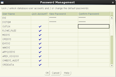 Next this screen will come up. Create a password for SYS and SYSTEM user and click on Ok