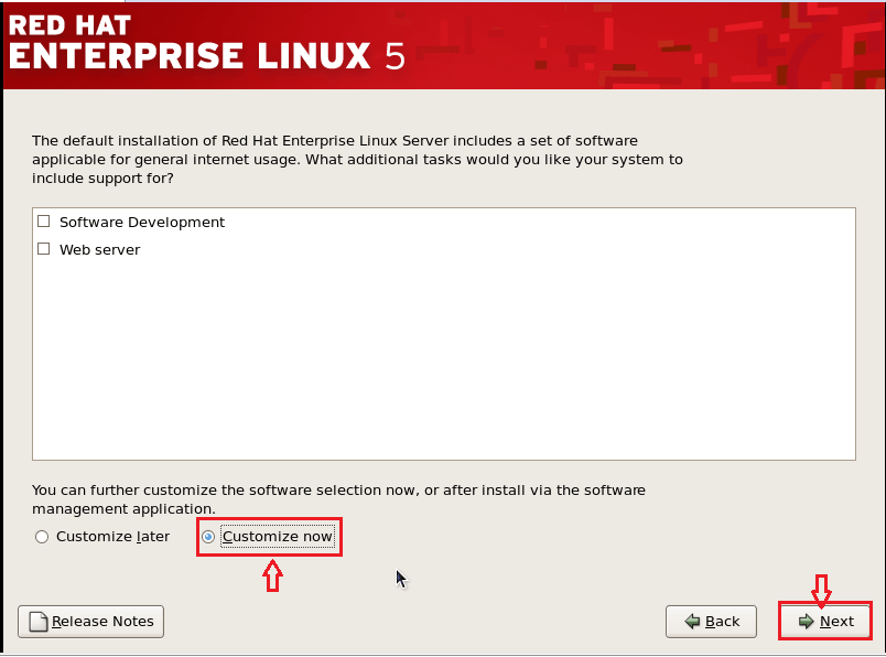 Select Customize Now to select the list of rpms you want to include at the time of installation