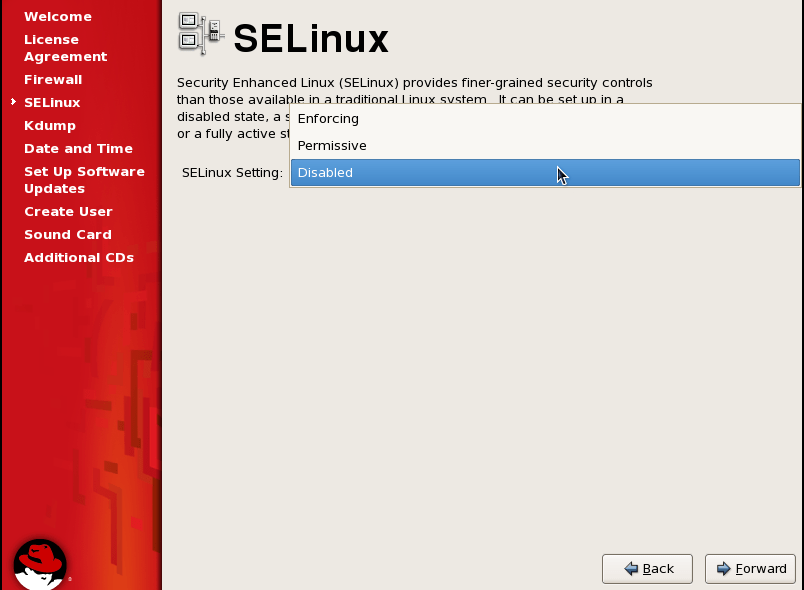 You can choose to enable or disable SELinux