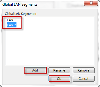 In this window you will have to create 2 LAN Segments namely LAN 1 and LAN 2 as shown below. Click on Add to create the same and once done click on OK to save the changes.