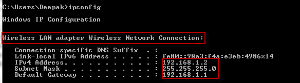 Check the IP of your Windows Machine which is connected to Internet. As you see our IP Address details are