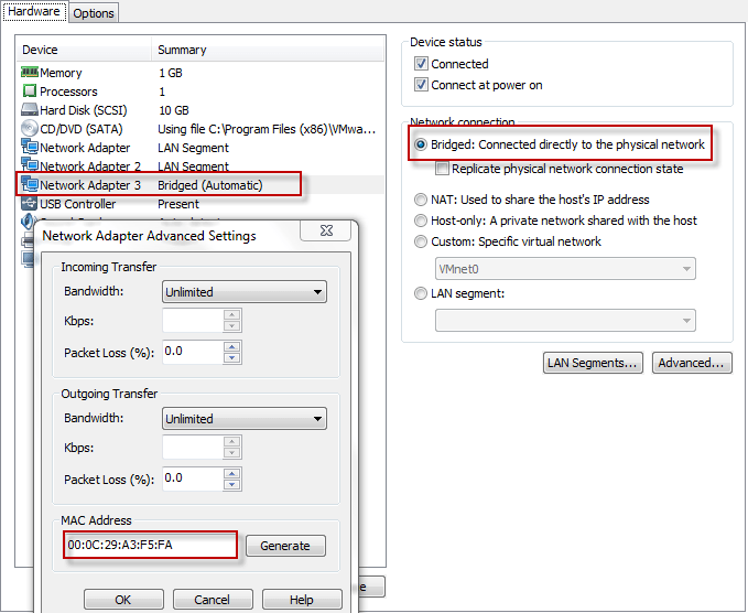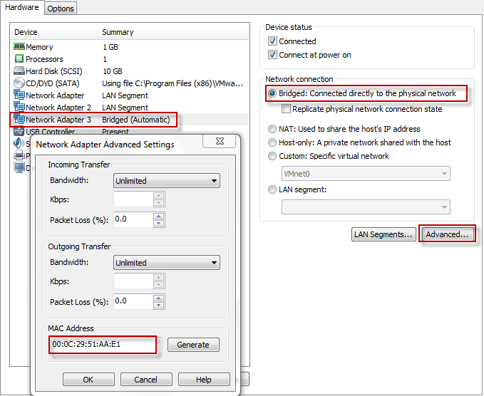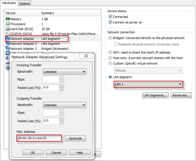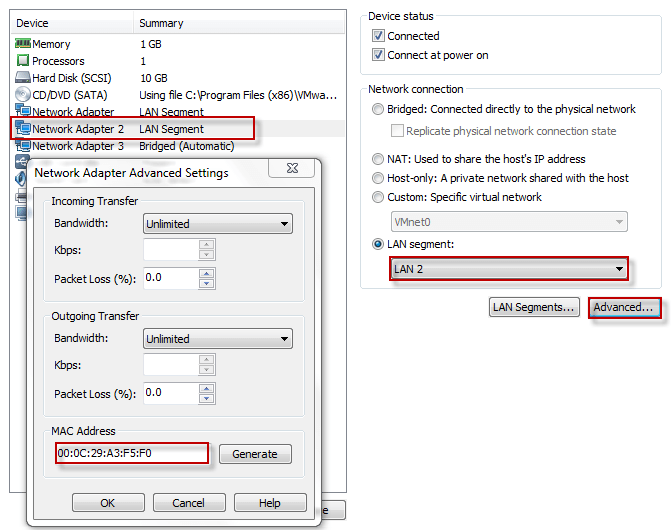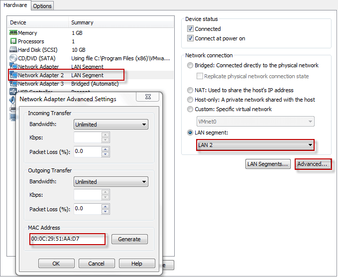 For Network Adapter 2 -- LAN 2 (10.10.10.0.0/24)