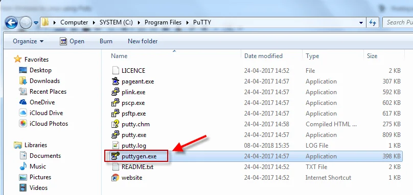 My Putty files are available at C:Program FilesPuTTY as below