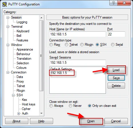 This will create a new shortcut with the host name as shown below. Select the hostname and click on Load, next click on "Open" to open a new connection